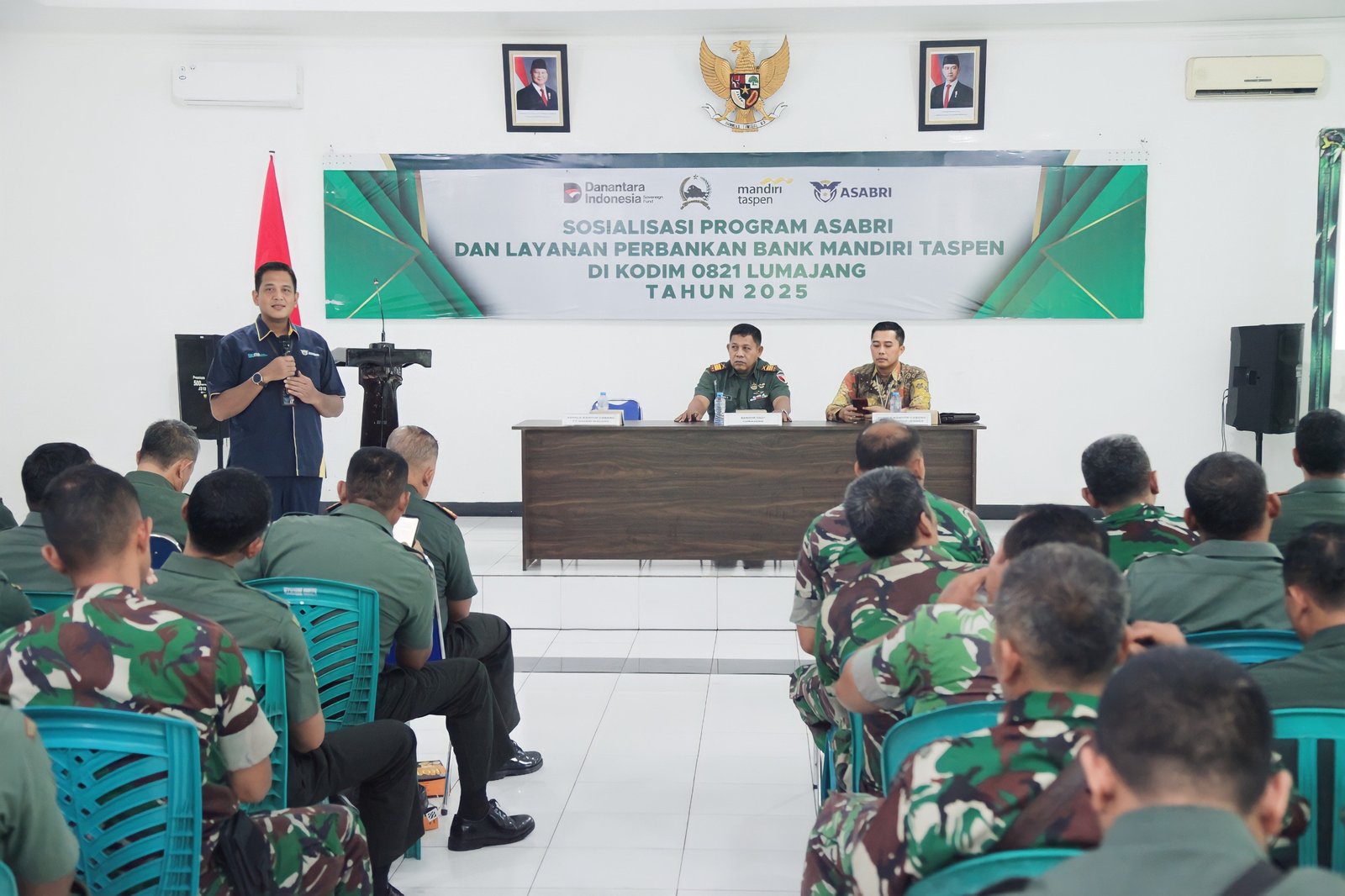 Lumajang – Kodim 0821 Lumajang menyelenggarakan kegiatan Sosialisasi Program Asabri dan Layanan Perbankan Bank Mandiri Taspen, bertempat di Aula Raden Wijaya Makodim 0821 Lumajang, Kamis (6/11/2025). Kegiatan ini digelar dalam rangka memberikan pemahaman komprehensif kepada prajurit dan PNS TNI AD mengenai hak, kewajiban, serta manfaat perlindungan jaminan sosial dan layanan keuangan yang berkelanjutan.