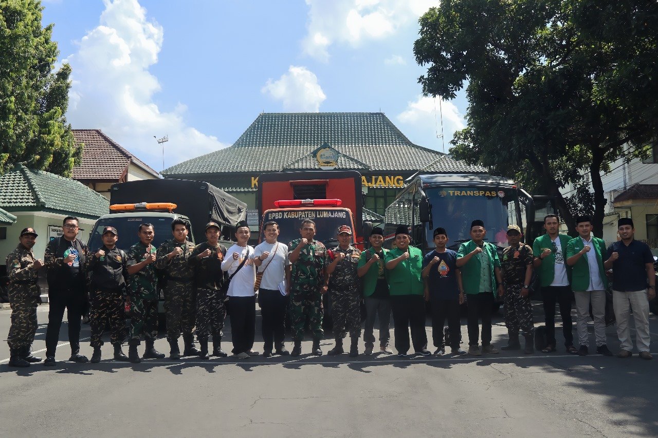 Lumajang, Dalam rangka mendukung pelaksanaan Apel Akbar Gerakan Pemuda (GP) Ansor se-Jawa Timur dan pelantikan Pengurus Wilayah GP Ansor Jawa Timur, Kodim 0821/Lumajang melaksanakan kegiatan monitoring pemberangkatan 100 kader Banser dan Ansor dari wilayah Kabupaten Lumajang. Kegiatan ini bertempat di halaman Makodim 0821. Minggu(13/4/2025)