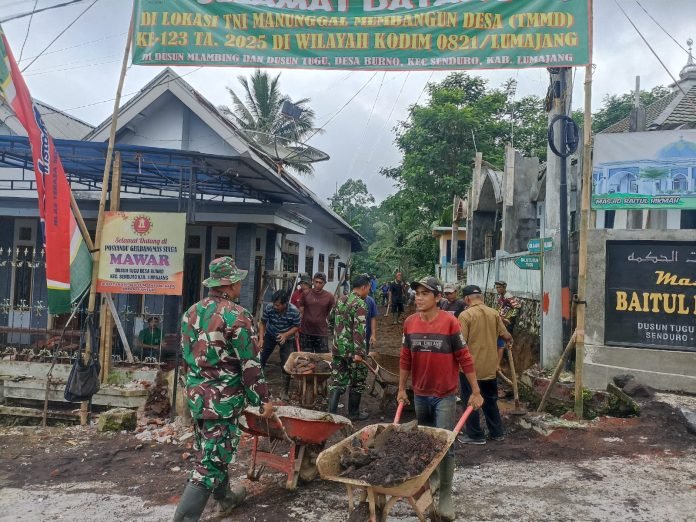 Lumajang, Kodim 0821 Lumajang mulai melaksanakan kegiatan Pra TNI Manunggal Membangun Desa (TMMD) ke-123 dengan fokus pada pelebaran badan jalan di Dusun Mlambing dan Dusun Tugu, Desa Burno, Kecamatan Senduro, Kabupaten Lumajang, Minggu (16-2-2025). Kegiatan ini bertujuan untuk meningkatkan aksesibilitas masyarakat serta mendukung perekonomian desa.