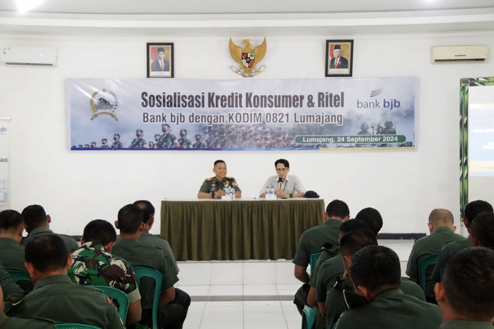 Lumajang – Dalam upaya meningkatkan literasi keuangan dan memberikan pemahaman mengenai layanan perbankan, Kodim 0821/Lumajang menerima sosialisasi Kredit Konsumer dan Ritel dari Bank BJB KCP Jember. Acara berlangsung pada Selasa (24/9/2024) di Aula Raden Wijaya Kodim 0821 Lumajang, dengan dihadiri oleh jajaran prajurit dan PNS Kodim 0821.