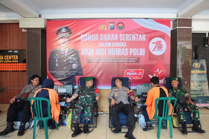 Kodim 0821/Lumajang Turut Serta dalam Donor Darah Peringati Hari Humas Polri ke-73