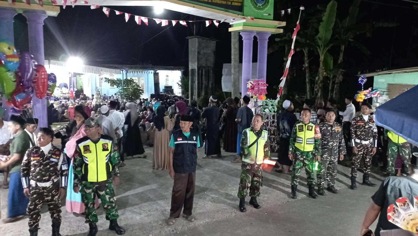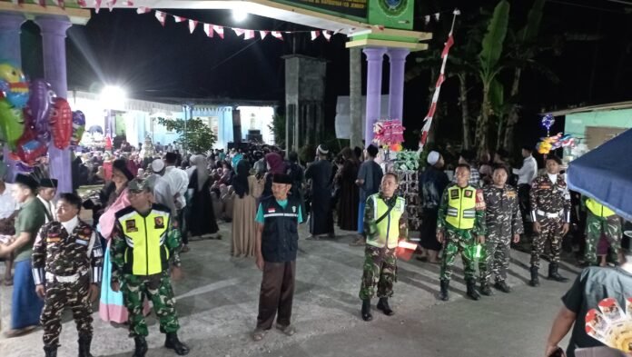 Lumajang, Sebagai bentuk Sinergi Dalam menjaga keamanan dan ketertiban masyarakat, personel Posramil 0821-05/Kedungjajang bersama anggota Banser Desa Tempursari melaksanakan kegiatan patroli wilayah di acara Gebyar Sholawat yang digelar di Dusun Ketindan, Desa Tempursari, Kecamatan Kedungjajang, Kabupaten Lumajang, Jawa Timur, Sabtu (27/9/2025).