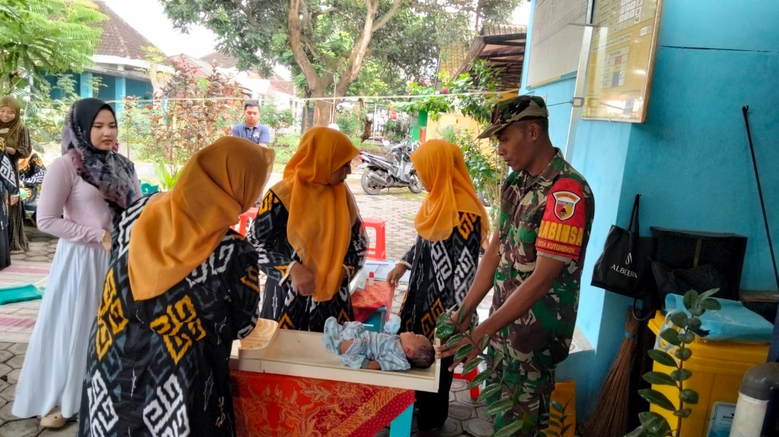 Lumajang — Wujud nyata kepedulian TNI terhadap peningkatan kualitas kesehatan masyarakat, Babinsa Kutorenon Koramil 0821-02/Sukodono, Serda Muhammad Yani, yang melaksanakan pendampingan pelayanan kesehatan di Posyandu Pelangi, Dusun Kepuh RT 001 RW 003, Desa Kutorenon, Kecamatan Sukodono, Kabupaten Lumajang, Jawa Timur, Sabtu (10/1/2026).