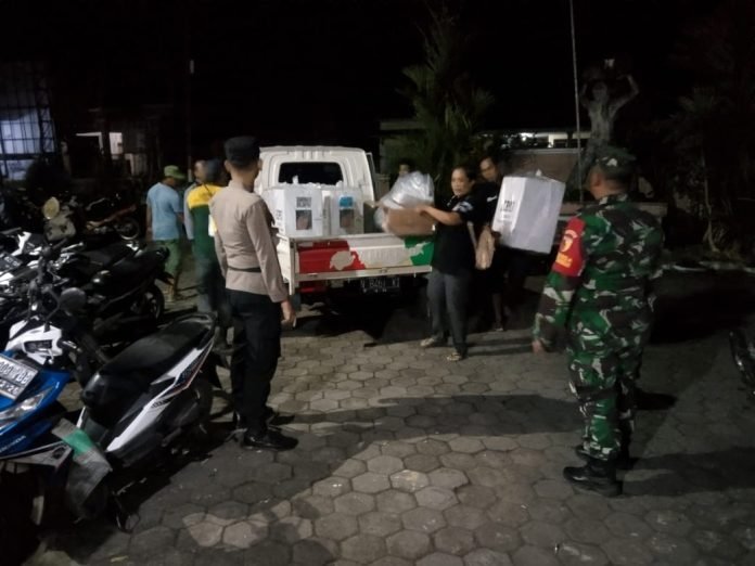 Kegiatan tersebut, dilaksanakan setelah proses kegiatan usai pelaksanaan penghitungan pada pemungutan suara Pemilu 2024, dari masing-masing TPS menuju menuju PPS Desa.