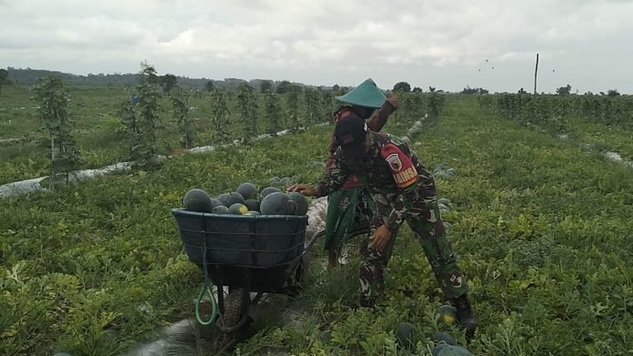 Lumajang, Wujud nyata kepedulian terhadap ketahanan pangan terus ditunjukkan oleh Babinsa Pandanwangi Koramil 0821-10/Tempeh, Kopda Ahmad Latip, yang melaksanakan pendampingan kepada petani dalam kegiatan Panen Raya Semangka di pesisir pantai Padang Savana, Dusun Pemukiman, Desa Pandanwangi, Kecamatan Tempeh, Kabupaten Lumajang, Jawa Timur, pada Rabu (9/7/2025).