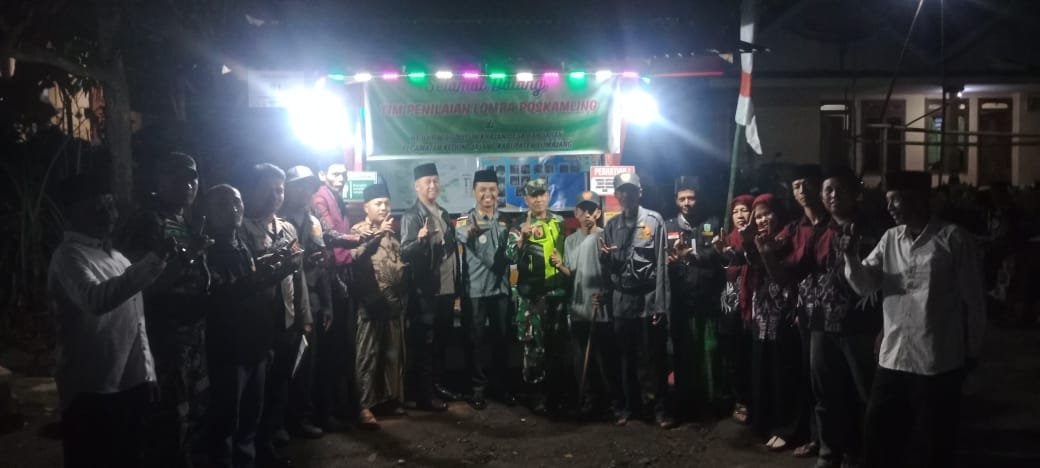 Lumajang, Dalam rangka memperingati Hari Ulang Tahun (HUT) Kemerdekaan Republik Indonesia ke-80, Babinsa Bandaran Posramil 0821-05/Kedungjajang Serda Jemi Khristian Rasi mendampingi kegiatan penilaian lomba Sistem Keamanan Lingkungan (Siskamling) yang dilaksanakan oleh Forum Komunikasi Pimpinan Kecamatan (Forkopimcam) Kedungjajang di wilayah Desa Bandaran, Kecamatan Kedungjajang, Kabupaten Lumajang, Jawa Timur, Rabu malam (30/7/2025).