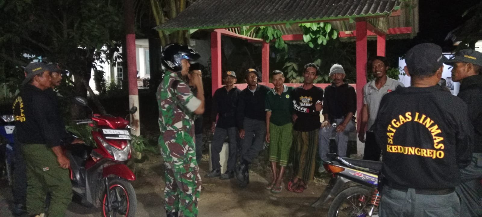 Lumajang, Dalam upaya menciptakan lingkungan yang aman, tertib, dan kondusif, Babinsa Kedungrejo Koramil 0821-16/Rowokangkung, Sertu Riono Asnan, bersama Babinkamtibmas dan Satgas Keamanan Desa (SKD) menggelar patroli wilayah di Dusun Pondok Asri, RW 004 RW 002, Desa Kedungrejo, Kecamatan Rowokangkung, Kabupaten Lumajang, Jawa Timur, pada Rabu (10/9/2024) malam.