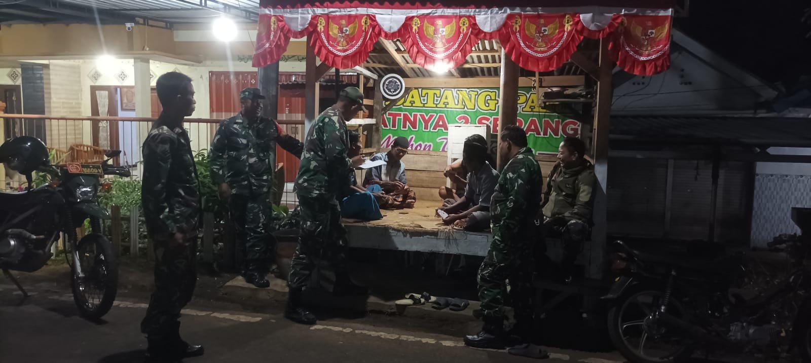 Kegiatan tersebut dilakukan sebagai bentuk sinergi antara aparat TNI dan organisasi masyarakat dalam mewujudkan situasi lingkungan yang aman, tertib, dan kondusif, terutama di malam hari saat potensi gangguan keamanan cenderung meningkat.