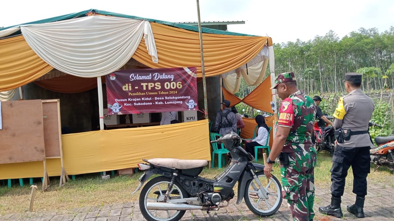 Lumajang, Dalam rangka memastikan kelancaran dan keamanan pelaksanaan Pemilihan Kepala Daerah (Pilkada) Serentak, Babinsa Selokgondang Koramil 0821-02/Sukodono, Serda Danny Sipasulta, bersama Bhabinkamtibmas Desa Selokgondang, Bripka Roni Yoni Fattah, melaksanakan patroli gabungan di wilayah Desa Selokgondang, Kecamatan Sukodono, Kabupaten Lumajang, Jawa Timur, pada Rabu (27/11/2024).