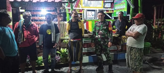 Lumajang, Untuk menjaga keamanan dan ketertiban lingkungan, Babinsa Kelurahan Jogotrunan Koramil 0821-01/Lumajang, Serda Eko Sumarno, melaksanakan patroli wilayah di RW 011 Kelurahan Jogotrunan, Kecamatan Lumajang, Kabupaten Lumajang, Jawa Timur, pada Senin (14/10/2024) malam.