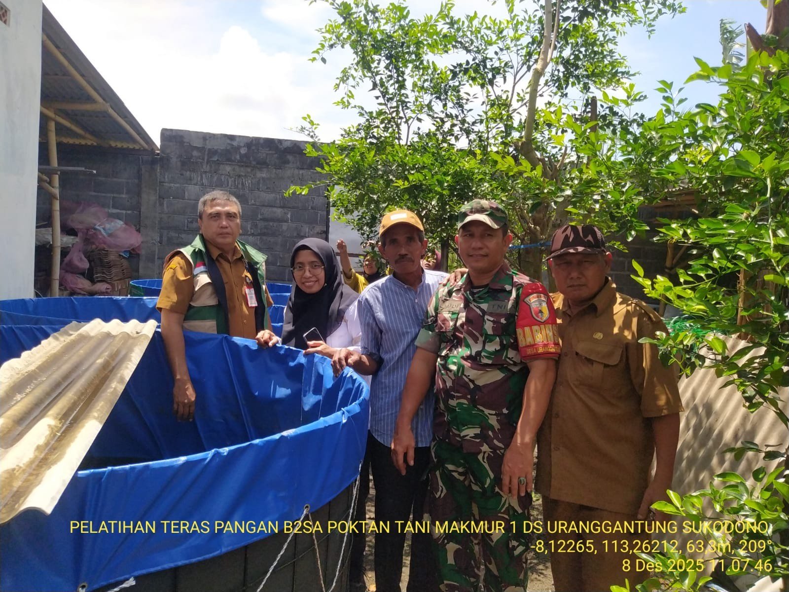 Lumajang — Upaya meningkatkan ketahanan pangan keluarga terus dilakukan oleh berbagai pihak. Salah satunya terlihat di Desa Uranggantung, Kecamatan Sukodono, ketika Babinsa Koramil 0821-02/Sukodono Serda Sulaidi mendampingi pelatihan Teras Pangan yang digelar oleh Dinas Ketahanan Pangan Kabupaten Lumajang, Senin (8/12/2025).