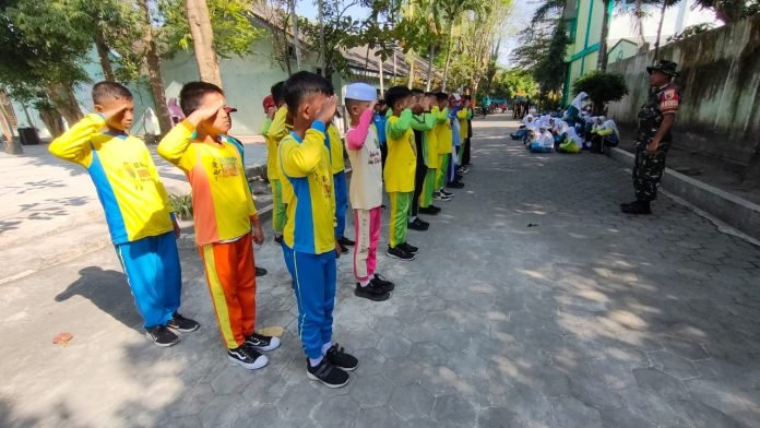 Lumajang, Mengakhiri Masa Pengenalan Lingkungan Sekolah (MPLS) tahun ajaran baru, Babinsa Klampokarum Koramil 0821/15 Tekung, Sertu Wawan Efendi, melaksanakan praktek materi peraturan baris-berbaris (PBB) kepada siswa SMP Negeri 1 Tekung Kecamatan Tekung Kabupaten Lumajang, Jawa Timur, pada Sabtu (20/7/2024).