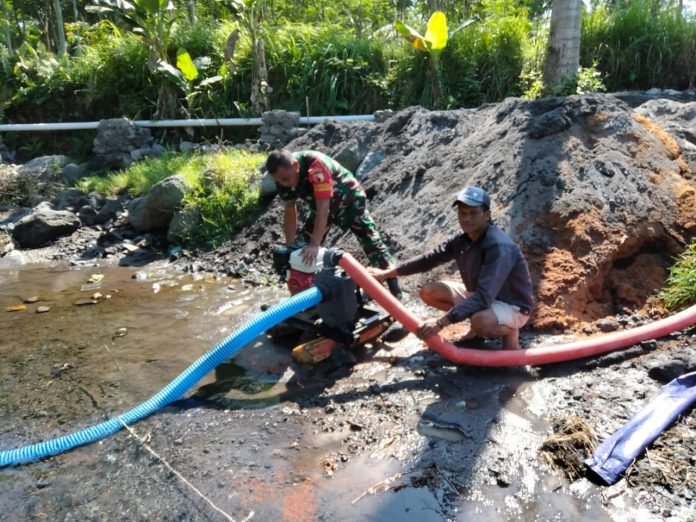 Lumajang, Dalam upaya meningkatkan produktivitas pertanian Babinsa Sumberwuluh Koramil 0821/09 Candipuro, Sertu Nurhadi, melaksanakan kegiatan pendampingan pertanian yang melibatkan pemanfaatan mesin pompa air, di Dusun Kebondeli Utara RT 002 RW 003 Desa Sumberwuluh, Kecamatan Candipuro, Kabupaten Lumajang, Jawa Timur, pada Sabtu (27/7/2024).