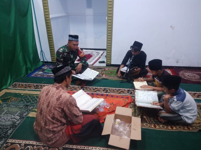 Lumajang, Dalam upaya mempererat hubungan dengan masyarakat serta menjalankan ibadah di bulan suci Ramadan, Babinsa Kedungjajang Posramil 0821/05 Kedungjajang Serda Edi Supriyanto melaksanakan kegiatan tadarus bersama warga sembari melakukan patroli wilayah.