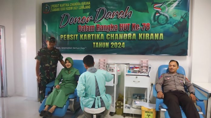 Lumajang, Dalam rangka memperingati HUT Persit Kartika Chandra Kirana (KCK) Ke-78 Tahun 2024, Persit KCK Cab XXXV Kodim 0821/Lumajang menggelar Donor Darah bertempat di Unit Donor Darah (UDD) Kabupaten Lumajang Jawa Timur, Sabtu (1/3/2024).