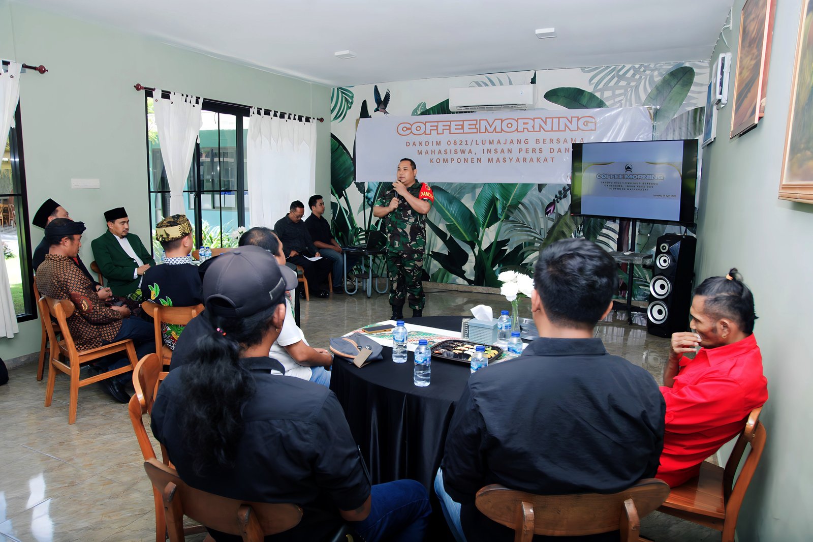Lumajang, Dalam rangka mempererat hubungan antara TNI dan elemen masyarakat, Kodim 0821/Lumajang menggelar kegiatan “Coffee Morning” bersama mahasiswa, insan pers, dan berbagai komponen masyarakat di wilayah Kabupaten Lumajang. Kegiatan ini dilaksanakan di CafĂ© Saujana, Kelurahan Rogotrunan, Kecamatan Lumajang, Kabupaten Lumajang, Rabu (16/4/2025).