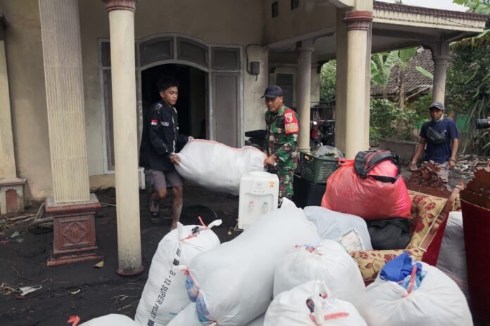 Lumajang — Upaya penyelamatan harta benda warga yang terdampak erupsi Gunung Semeru kembali dilakukan secara intensif. Pada Minggu, 23 November 2025, personel gabungan dari Kodim 0821 Lumajang, Yonif 527/BY, serta Kostrad Divisi 2 diterjunkan langsung ke Dusun Sumbersari, Desa Supiturang, Kecamatan Pronojiwo, Kabupaten Lumajang, untuk membantu proses evakuasi barang-barang berharga milik masyarakat.