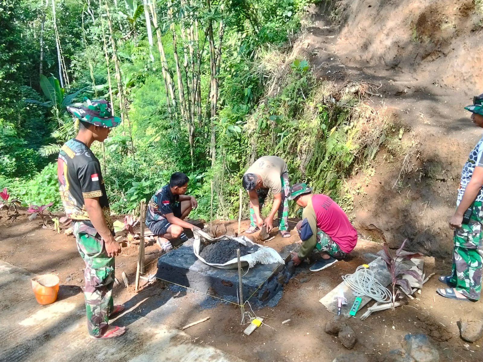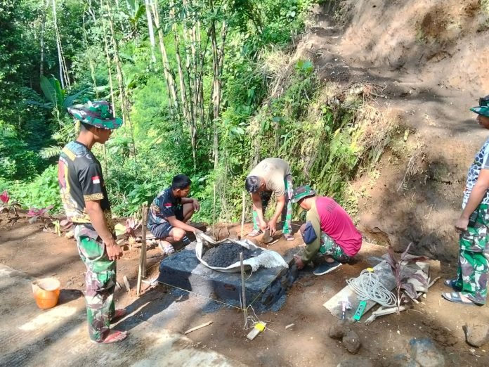 Lumajang, TMMD ke-123, Sebagai bentuk nyata pengabdian kepada masyarakat, personel Satuan Tugas (Satgas) TNI Manunggal Membangun Desa (TMMD) ke-123 melaksanakan pembangunan Tugu Prasasti di Jembatan Dusun Tugu, Desa Burno, Kecamatan Senduro, Kabupaten Lumajang, Jumat (7/3/2025).