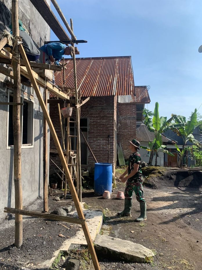 Lumajang, TMMD ke-123, Semangat gotong royong terus digelorakan dalam program TNI Manunggal Membangun Desa (TMMD) ke-123 Kodim 0821 Lumajang. Pada Sabtu (8/3/2025), Satgas TMMD bersama warga Dusun Mlambing, Desa Burno, bahu-membahu menyelesaikan renovasi Rumah Tidak Layak Huni (RTLH) milik Ibu Ngatijah.