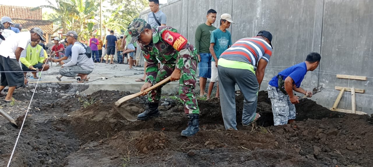 Lumajang, Bentuk nyata sinergi antara TNI dan masyarakat, Babinsa Kalipepe Koramil 0821-11/Yosowilangun Koptu Subaeri, turut serta membantu warga dalam kegiatan kerja bakti pembangunan pondasi Mushola Al Ikhlas yang berlokasi di Dusun Wadaan RT 003 RW 002 Desa Kalipepe Kecamatan Yosowilangun, Kabupaten Lumajang, Jawa Timur, pada Minggu (18/5/2025).