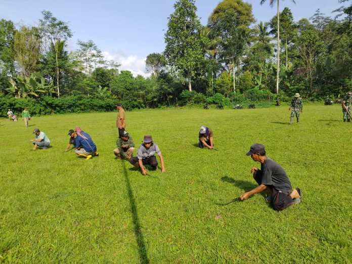 Lumajang, TMMD ke-123, Menjelang penutupan program TNI Manunggal Membangun Desa (TMMD) ke-123, Satgas TMMD Kodim 0821/Lumajang terus menunjukkan dedikasi dan kebersamaannya dengan masyarakat. Personel Satgas yang dipimpin oleh Letda Marinir Sigit bersama sepuluh anggota TNI, dibantu warga Desa Burno, melaksanakan perapian rumput di lapangan sepak bola Desa Tugu. Selasa(18/3/2025)