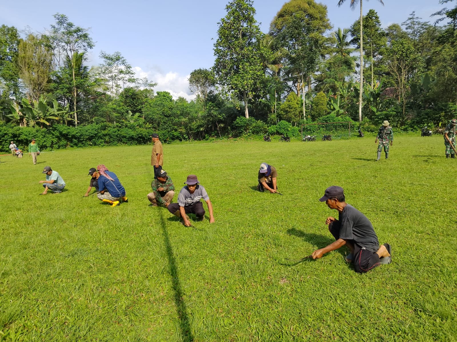 Meskipun tengah menjalankan ibadah puasa, semangat gotong royong tetap berkobar di antara prajurit dan warga. Lapangan sepak bola yang menjadi pusat kegiatan masyarakat tersebut dipersiapkan untuk mendukung kelancaran acara penutupan TMMD.