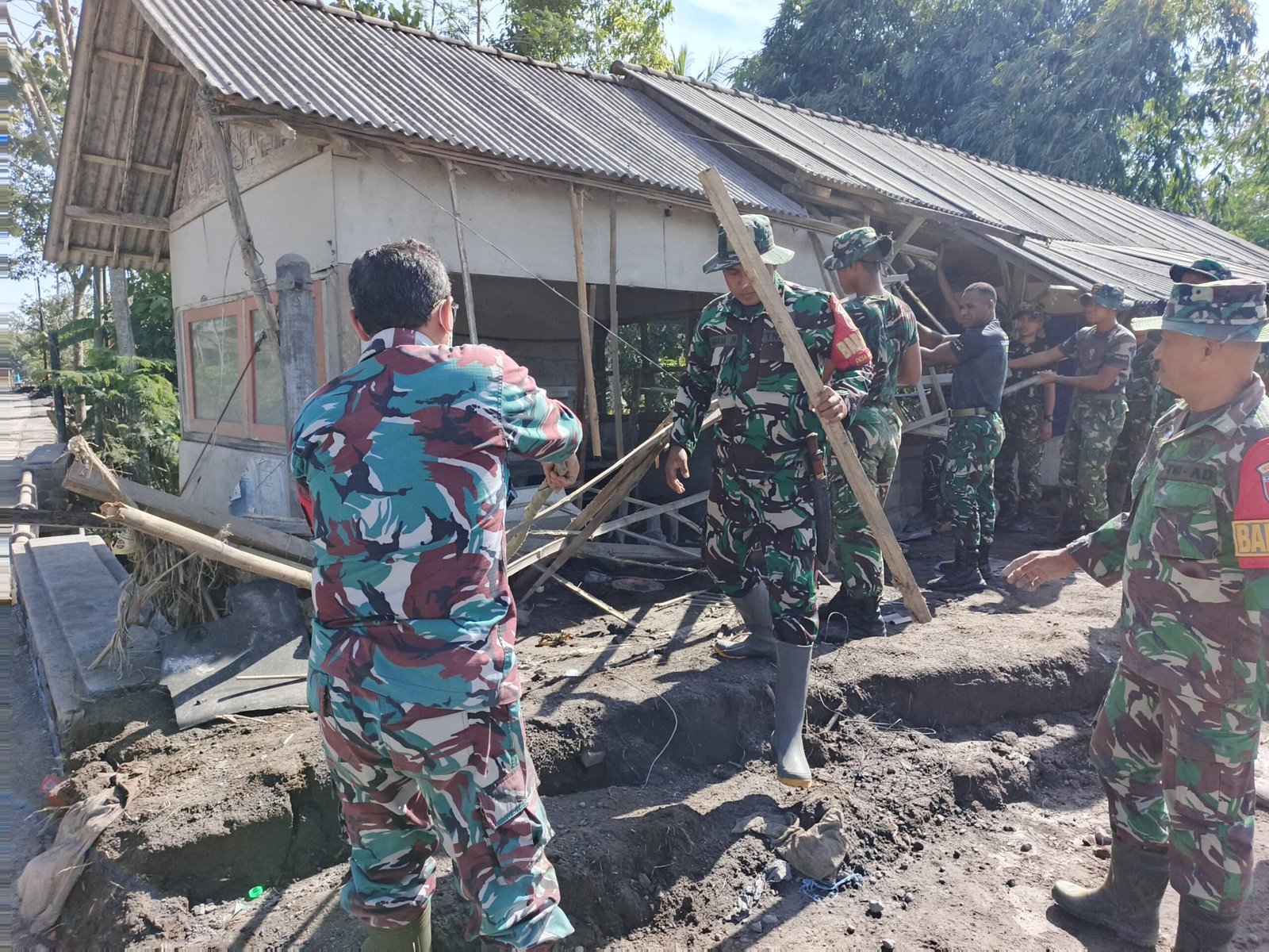 Danramil 0821-14/Pronojiwo, Letda Arh Sugiyono, yang memimpin jalannya kegiatan, menegaskan bahwa kebersamaan seluruh unsur menjadi kekuatan terbesar dalam memulihkan kondisi pascabencana.