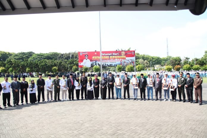 Lumajang – Kepala Staf Kodim 0821/Lumajang Mayor Inf Aditya Kurnia Rahman, bersama jajaran Forkopimda Kabupaten Lumajang turut serta dalam upacara peringatan Hari Sumpah Pemuda ke-96 dengan tema ” Maju Bersama Indonesia Raya ” yang berlangsung khidmat di Alun-alun Lumajang Jawa Timur, Senin (28/10/2024).