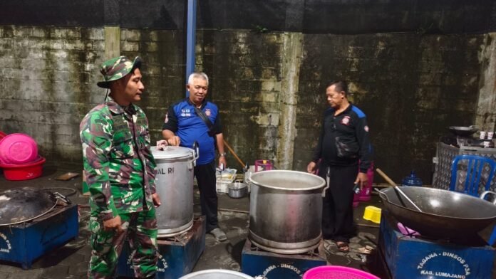 Di antara para relawan itu, tampak Babinsa Sumber Urip, Sertu M. Arif Wibowo, yang turut terjun langsung membantu mengolah bahan makanan, membagikan paket makan siang, hingga memastikan distribusi berjalan aman dan tertib. Kehadirannya memberikan dorongan moral bagi para relawan lainnya dan menenangkan warga yang masih berada di tempat pengungsian.
