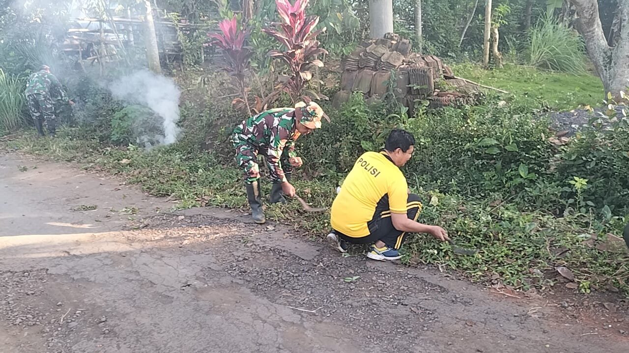 Lumajang, Babinsa Kedawung dari Koramil 0821/18 Padang, Serda Imam Muarif, bersama Babinkamtibmas Kedawung, Bripka Mahendra Herning Prabowo, melaksanakan kegiatan kerja bakti pembersihan lingkungan di Dusun Benel, Desa Kedawung, Kecamatan Padang, Kabupaten Lumajang. Jawa Timur, pada Senin (20/5/2024). Kegiatan yang melibatkan berbagai pihak ini bertujuan untuk mencegah penyebaran demam berdarah serta memberikan edukasi kepada masyarakat tentang pentingnya menjaga kebersihan rumah dan pekarangan.