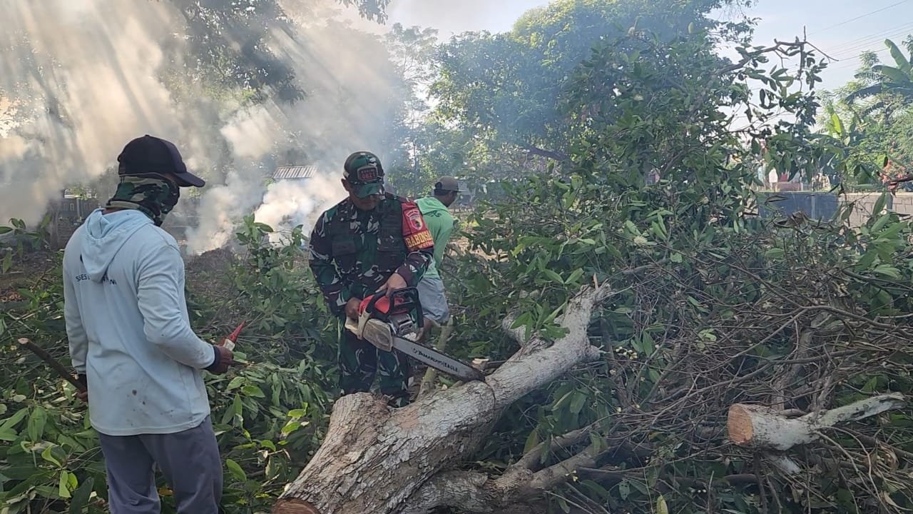 Lumajang, Dalam semangat gotong royong dan kepedulian terhadap lingkungan, Babinsa Wotgalih Koramil 0821-11/Yosowilangun, Peltu Guntur Rudi Purwanto, bersama 30 warga Desa Wotgalih melaksanakan kegiatan kerja bakti pembersihan dan pemotongan pohon di area Tempat Pemakaman Umum (TPU) Mbah Drajid, Desa Wotgalih, Kecamatan Yosowilangun, Kabupaten Lumajang, Jawa Timur, pada Minggu (20/7/2025).