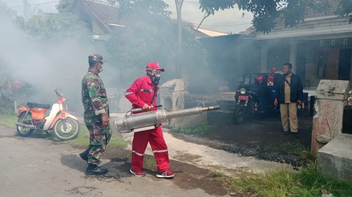 Lumajang, Dalam upaya mencegah penyebaran penyakit demam berdarah dengue (DBD), Babinsa Karanganyar Koramil 0821-11/Yosowilangun, Sertu Taufiq Abdul Lukito, bersama tim dari Puskesmas Yosowilangun melaksanakan kegiatan fogging di pemukiman warga Dusun Karangsari RT 003 RW 001, Desa Karanganyar, Kecamatan Yosowilangun, Kabupaten Lumajang, Jawa Timur pada Kamis (23/1/2025).
