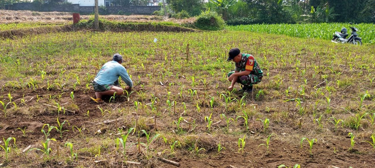 Lumajang, Dalam rangka mendukung ketahanan pangan wilayah binaan, Babinsa Pandansari Koramil 0821-03/Senduro, Sertu Ignatius Lede Ngongo, melaksanakan kegiatan pendampingan penyulaman tanaman jagung milik Bapak Neman, anggota Kelompok Tani (Poktan) Tani Makmur di Dusun Krajan RT 013 RW 007, Desa Pandansari, Kecamatan Senduro, Kabupaten Lumajang, Jawa Timur, pada Minggu (4/5/2025).