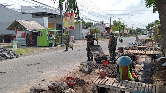 Lumajang, Wujud kemanunggalan TNI dengan rakyat terus terjalin melalui kegiatan di wilayah binaan. Babinsa Sukorejo Koramil 0821-13/Kunir, Serma Juni Riwayanto, bersama tiga personel Koramil 0821-13/Kunir melaksanakan pendampingan kerja bakti pembuatan drainase bersama warga di Dusun Gogosan RW 01, Desa Sukorejo, Kecamatan Kunir, Kabupaten Lumajang, Jawa Timur, Kamis (25/12/2025).