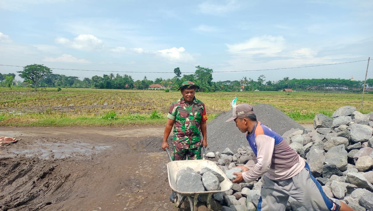“Kami hadir untuk mendampingi dan memberikan semangat kepada warga agar kegiatan pembangunan berjalan lancar dan selesai tepat waktu. Ini juga bagian dari tugas kami sebagai aparat teritorial untuk mendukung program pemerintah desa,” ujar dia.