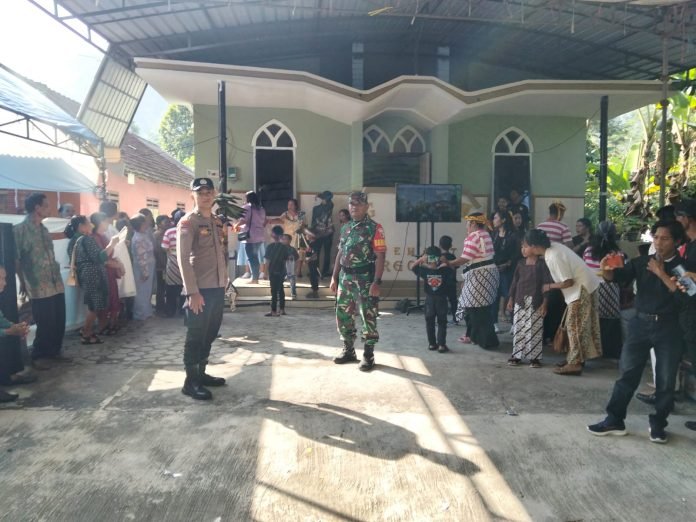 Lumajang, Wujud sinergitas antara TNI dan Polri kembali tampak dalam pengamanan kegiatan keagamaan dan adat masyarakat. Babinsa Tempursari Koramil 0821-18/Tempursari, Serka Fery Dian Prasetiyono, bersama Bhabinkamtibmas melaksanakan pengamanan perayaan Riyaya Adat Unduh-Unduh yang digelar oleh Jemaat Gereja Kristen Jawi Wetan (GKJW) Jemaat Argosari, Desa Tempursari, Kecamatan Tempursari, Kabupaten Lumajang, Jawa Timur, Minggu (11/5/2025).