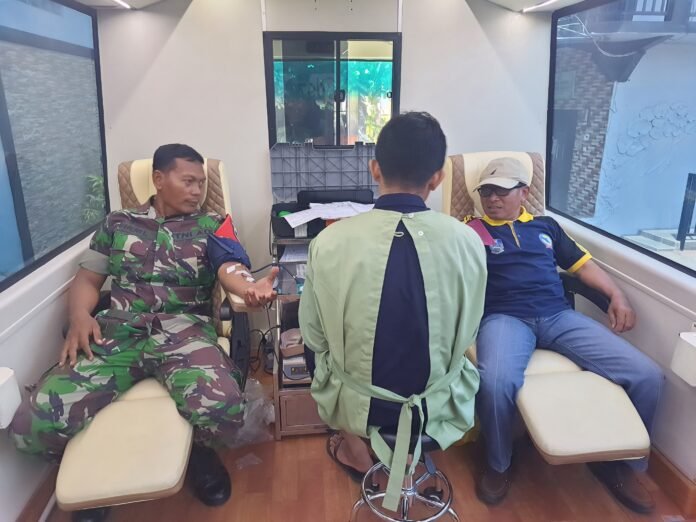 Lumajang, Bentuk kepedulian terhadap sesama kembali ditunjukkan oleh Babinsa Dawuhan Lor Koramil 0821-02/Sukodono, Serka Heri Lesmono. Ia turut serta dalam kegiatan donor darah yang digelar di rumah Kepala Desa Dawuhan Lor, Kecamatan Sukodono, Kabupaten Lumajang, Jawa Timur, pada Sabtu (6/9/2025).