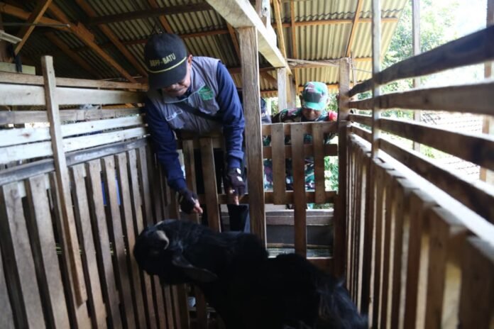 Malang, TMMD ke 126 – Program TNI Manunggal Membangun Desa (TMMD) ke-126 Kodim 0818/Malang-Batu tidak hanya berfokus pada pembangunan fisik, tetapi juga memperhatikan kesejahteraan masyarakat melalui kegiatan nonfisik. Salah satunya adalah pelaksanaan vaksinasi, pemberian vitamin, serta pembagian pil tablet cacing bagi hewan ternak milik warga Desa Lebakharjo, Kecamatan Ampelgading, Kabupaten Malang, Kamis (16/10/2025).
