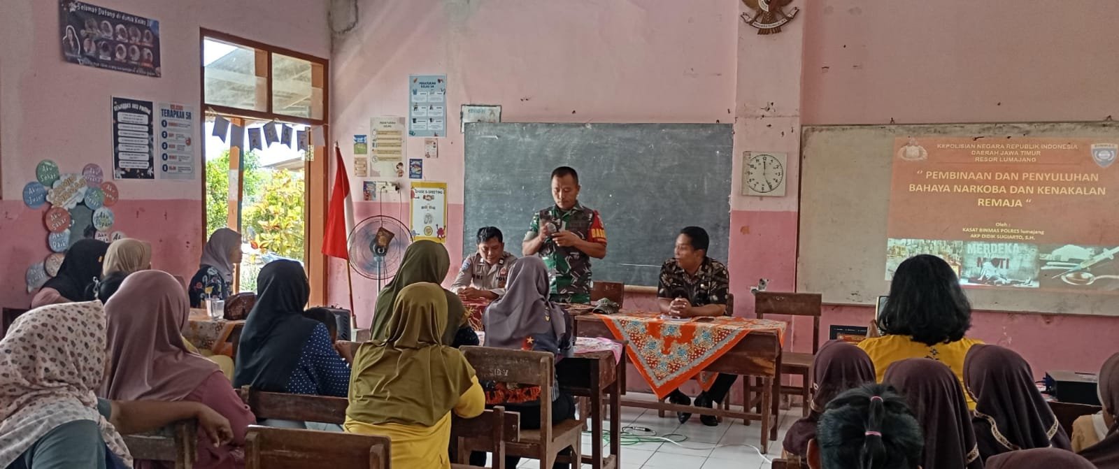 Lumajang, Upaya pencegahan terhadap bahaya narkoba dan perundungan di kalangan anak-anak sekolah, Babinsa Rowokangkung, Serka Ii Supriadi, bersama Bhabinkamtibmas Rowokangkung, Aipda Roni Hermawan, melaksanakan sosialisasi yang diselenggarakan oleh Kepala SDN 3 Rowokangkung, Kecamatan Rowokangkung, Kabupaten Lumajang, Jawa Timur, pada Sabtu, (21/9/2024)