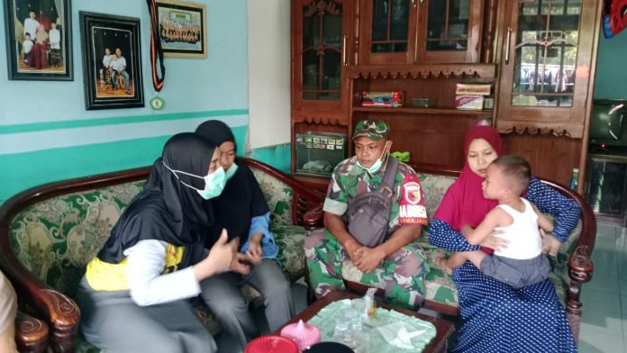 Lumajang, Babinsa Labruk Lor dari Koramil 0821/01 Lumajang, Serka Akhmad Yunianto, melaksanakan pendampingan terhadap tim tenaga kesehatan (Nakes) dari Puskesmas dalam kegiatan penyelidikan epidemiologi (PE) di Dusun Krajan Desa Labruk Lor Kecamatan Lumajang Kabupaten Lumajang, Jawa Timur, pada Selasa (21/5/2024).