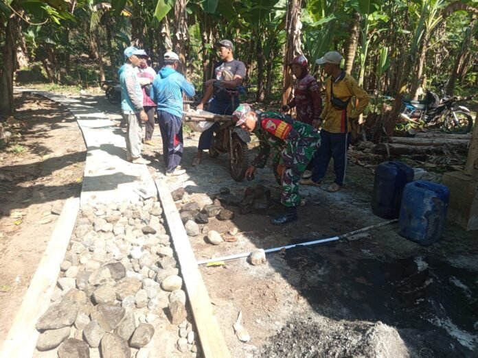 Lumajang, Wujud nyata kepedulian TNI terhadap pembangunan di pedesaan kembali terlihat. Babinsa Pundungsari Koramil 0821-18/Tempursari, Serka Fery Dian Prasetyono, bersama warga Desa Pundungsari melaksanakan kerja bakti pembangunan jalan rabat beton sepanjang 200 meter yang menghubungkan antar dusun dan menuju lahan pertanian pisang di Dusun Sukosari, Desa Pundungsari, Kecamatan Tempursari, Kabupaten Lumajang, Jawa Timur, pada Jumat (26/9/2025).