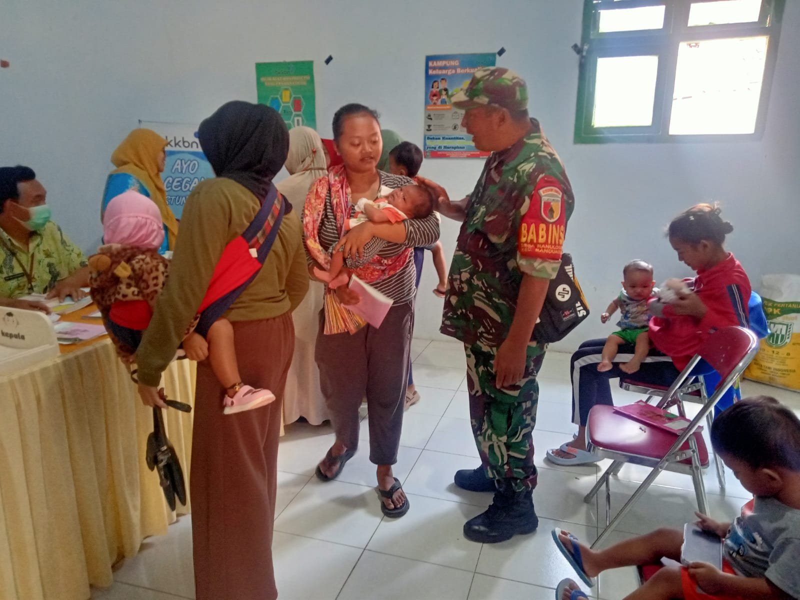 Lumajang, Dalam upaya mendukung kesehatan masyarakat, khususnya ibu dan anak, Babinsa Ranulogong Koramil 0821-07/Randuagung, Sertu Heru Dedianto, turut mendampingi kegiatan Posyandu Cendana yang digelar di Balai Desa Ranulogong, Dusun Krajan Tengah RT 02 RW 01, Kecamatan Randuagung, Kabupaten Lumajang, Jawa Timur, pada Jumat (4/4/2025).
