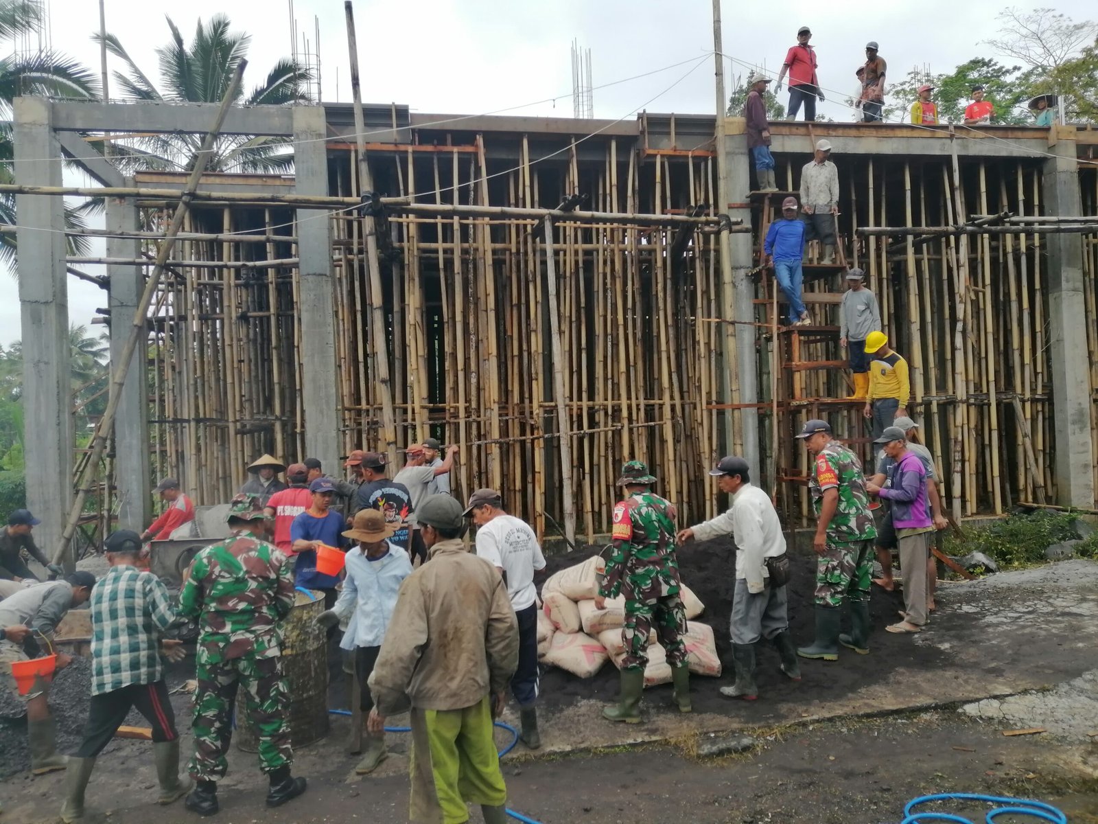 TNI dan Warga Bersinergi, Koramil Pasrujambe Laksanakan Karya Bakti Pengecoran Atap Masjid Al-Fallah