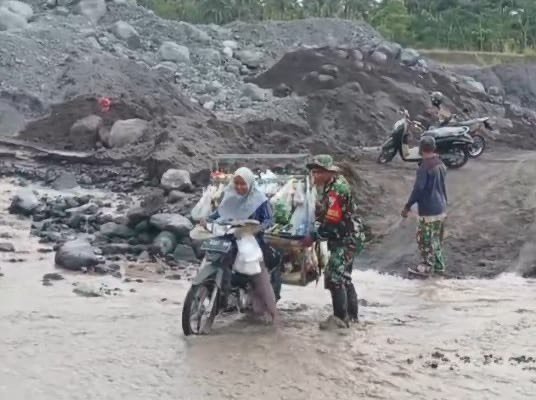 “Kami hadir untuk memastikan setiap warga bisa melewati jalur ini dengan selamat. Di saat lahar dingin melintasi jalan desa, risiko terperosok, terbawa arus, bahkan kecelakaan fatal sangat tinggi. Karena itu, prajurit kami siaga untuk membantu kapan pun dibutuhkan,” ungkap Kapten Khotib.
