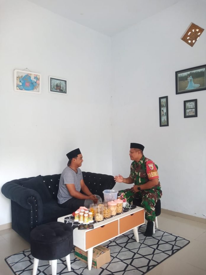 Kunjungan tersebut dilakukan ke kediaman salah satu warga, Aldi Rizal, sebagai bentuk kepedulian Babinsa terhadap warganya sekaligus memperkuat hubungan sosial antara TNI dan masyarakat.