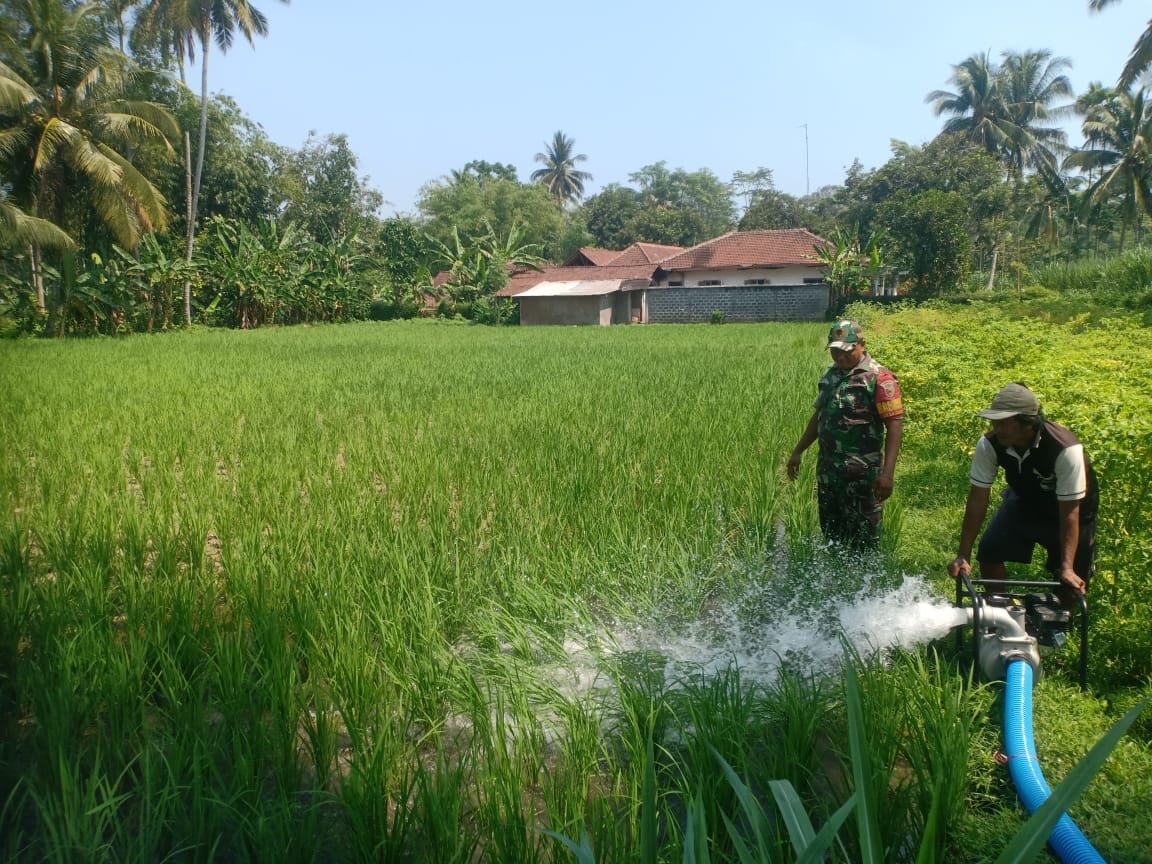 Pendampingan tersebut dilakukan melalui penggunaan pompa air guna memastikan ketersediaan air yang memadai untuk lahan padi di tengah kondisi cuaca yang kurang mendukung. Langkah itu diambil untuk menjamin pertumbuhan tanaman padi tetap optimal dan tidak mengalami gagal panen akibat kekurangan air.