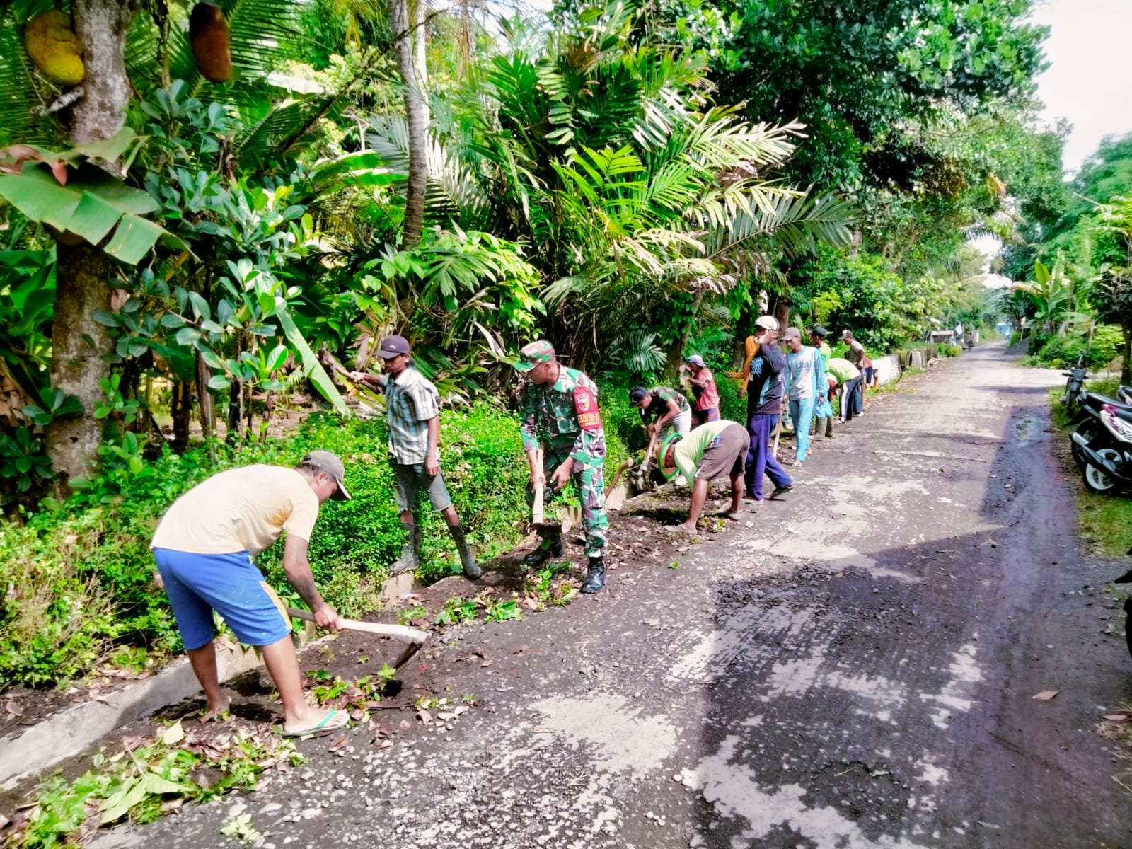Wujud Kepedulian terhadap Lingkungan, Babinsa Kebonsari Bersama Warga Kerja Bakti Pembersihan Jalan Dusun