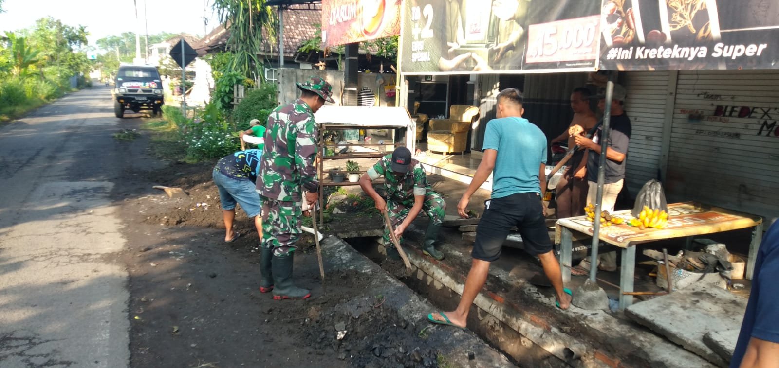 Kegiatan yang dilakukan secara bergotong royong tersebut menyasar saluran air di sepanjang jalan Dusun Tambakrejo Wetan yang mulai dipenuhi oleh sampah, lumpur, dan dedaunan yang menyumbat aliran air. Dengan alat seadanya, warga bersama Babinsa bekerja bahu-membahu membersihkan saluran agar kembali lancar.