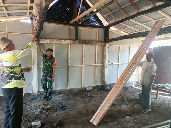 Lumajang, Kebersamaan dan solidaritas warga Dusun Tanjung Babinsa Bodang Koramil 0821-20/Padang, Serda Hendri Tri Cahyono bersama warga bersatu membantu renovasi rumah milik Surajak, seorang warga Dusun Tanjung Desa Padang, Kecamatan Padang, Kabupaten Lumajang, Jawa Timur, pada Senin (23/9/2024), yang rumahnya rusak parah akibat kebakaran beberapa waktu lalu.