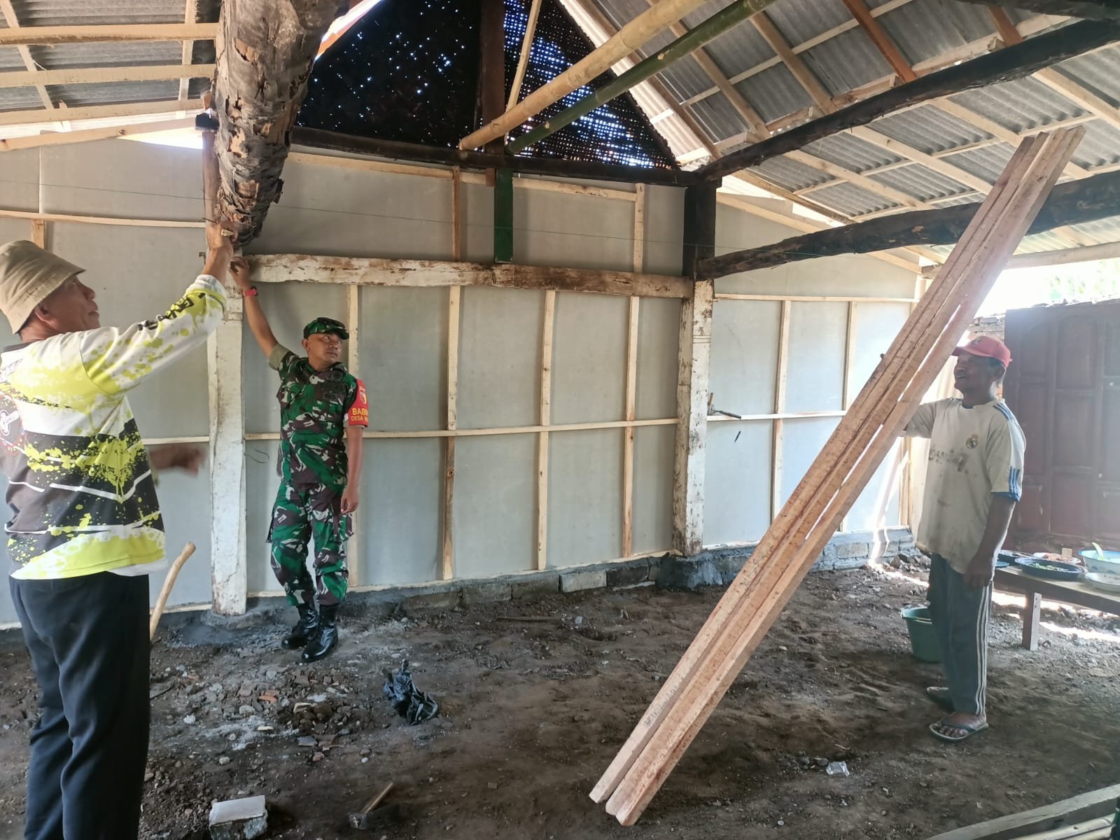 Proses renovasi rumah tersebut melibatkan banyak pihak, termasuk Kepala Desa dan perangkat desa, yang turut serta memimpin dan mengawasi jalannya kegiatan. Para warga bekerja sama memperbaiki bagian-bagian rumah yang rusak, mengganti atap yang hangus, serta memperbaiki dinding dan instalasi listrik yang turut terdampak oleh kebakaran. Semua dilakukan dengan penuh semangat dan kebersamaan, tanpa pamrih.